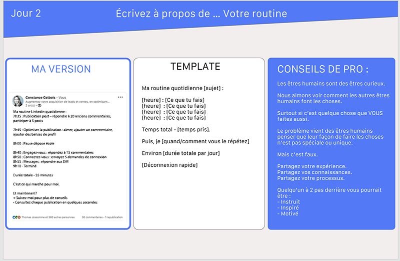 De mon côté, j’ai partagé ma routine LinkedIn. Je fais cette routine tous les jours.