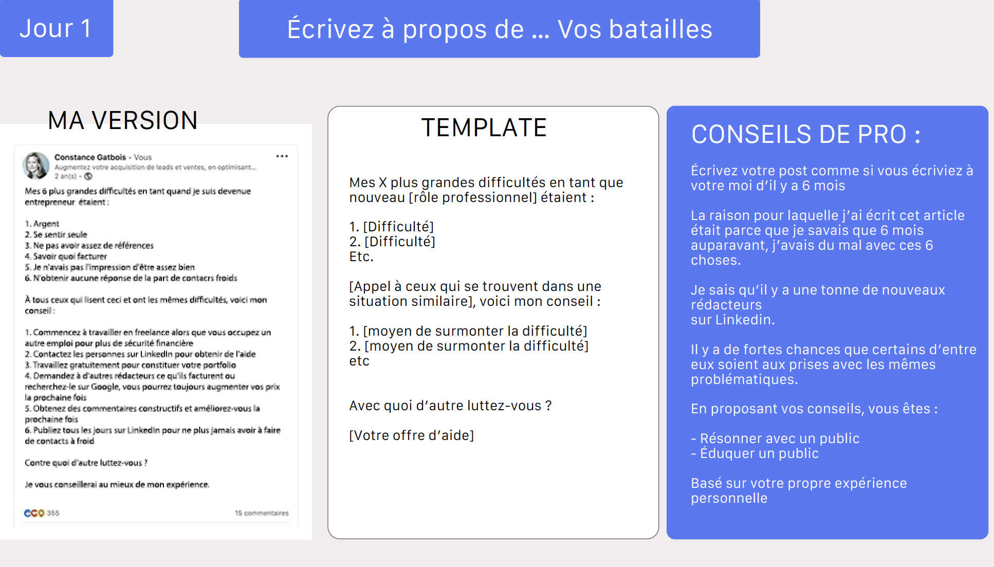 Alors ouvre le template de publication du jour 5 et lance-toi.